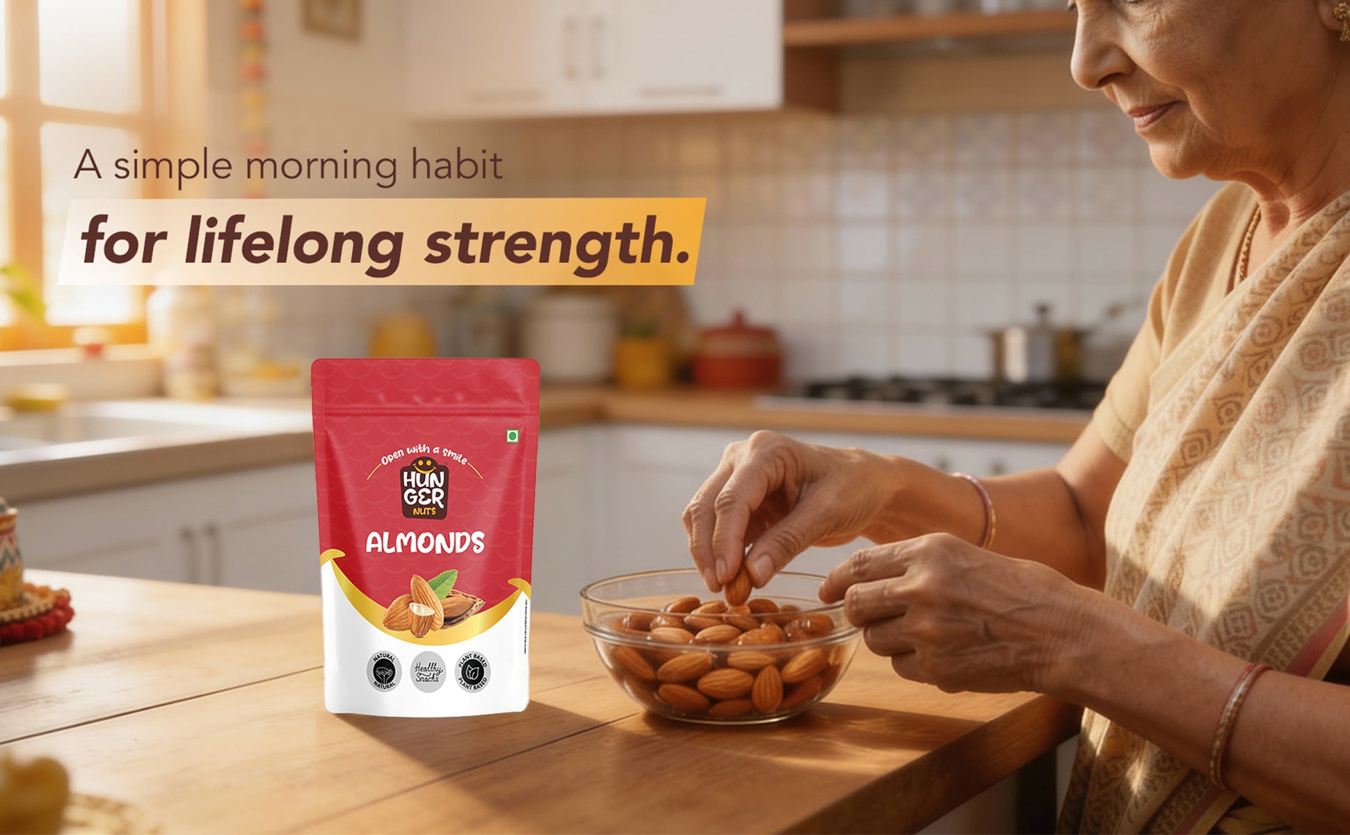 Hunger Classic Almonds (Badam) bring you the finest almonds with superior taste, texture, and nutrition. Each almond is carefully selected from premium farms, ensuring you get the highest quality nuts with maximum nutritional benefits.