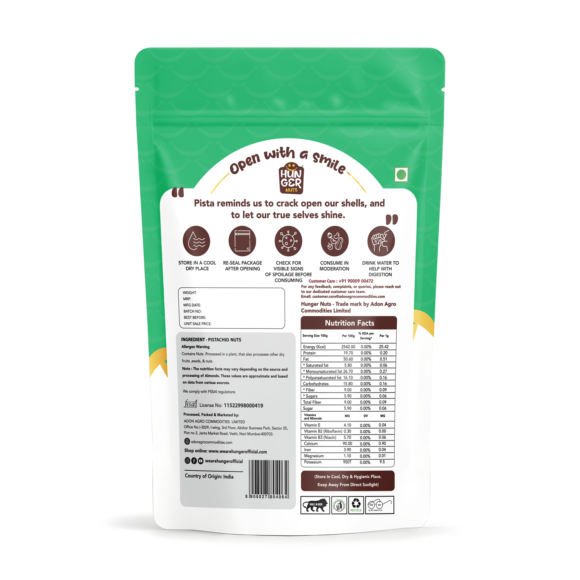 Crack open the crunchyHunger Classic Pistachios , a tasty and nutritious snack that’s rich in protein, fiber, and antioxidants. Grown on quality farms and hygienically packed, these roasted, unsalted pistachios are the perfect healthy snack for weight management and heart health.